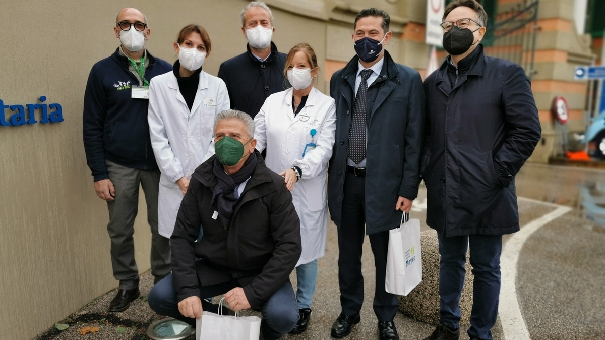 La Fondazione Confcommercio Toscana Onlus, che a livello regionale porta avanti le iniziative solidali e benefiche dell’associazione di categoria, chiude l’anno pensando ai piccoli pazienti dell’ospedale fiorentino Meyer. Il presidente della Fondazione Antonio Fanucchi ha infatti consegnato al segretario generale della Fondazione Meyer Alessandro Benedetti 5mila coloratissime mascherine chirurgiche offerte dalla ditta C&S Italy srl di Arezzo e un assegno da 2.500 euro da destinare all’acquisto di attrezzature utili a far fronte all’impennata di casi di bronchiolite (virus sinciziale) che l’ospedale sta affrontando in queste ultime settimane.